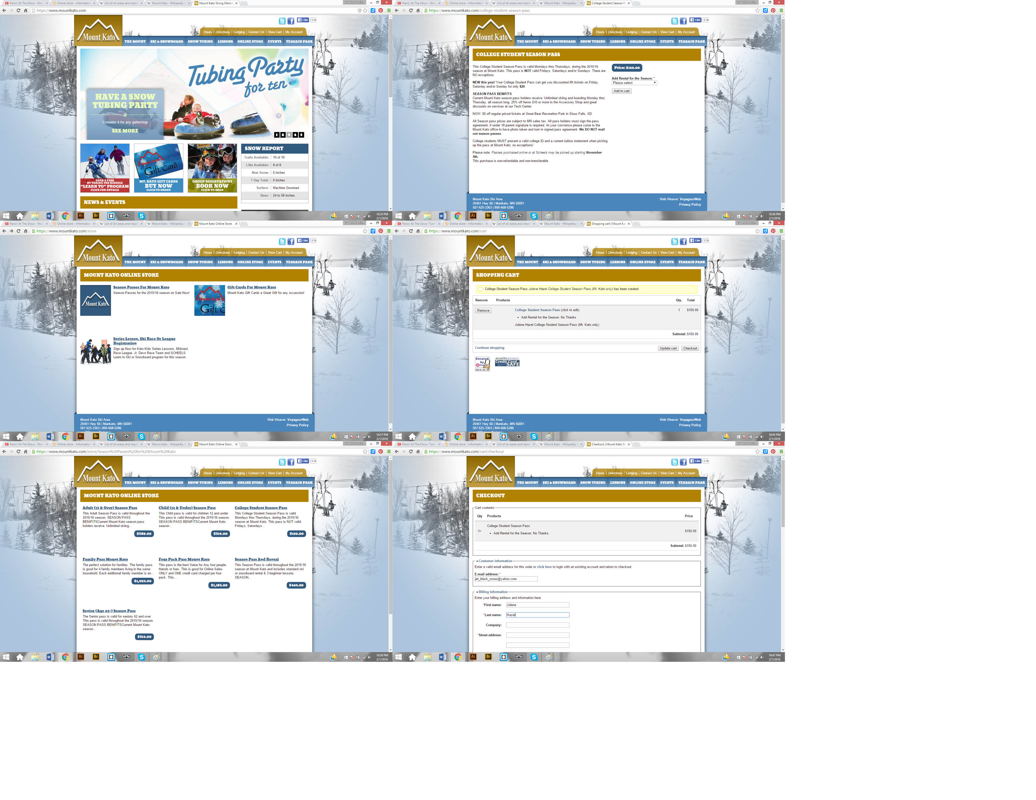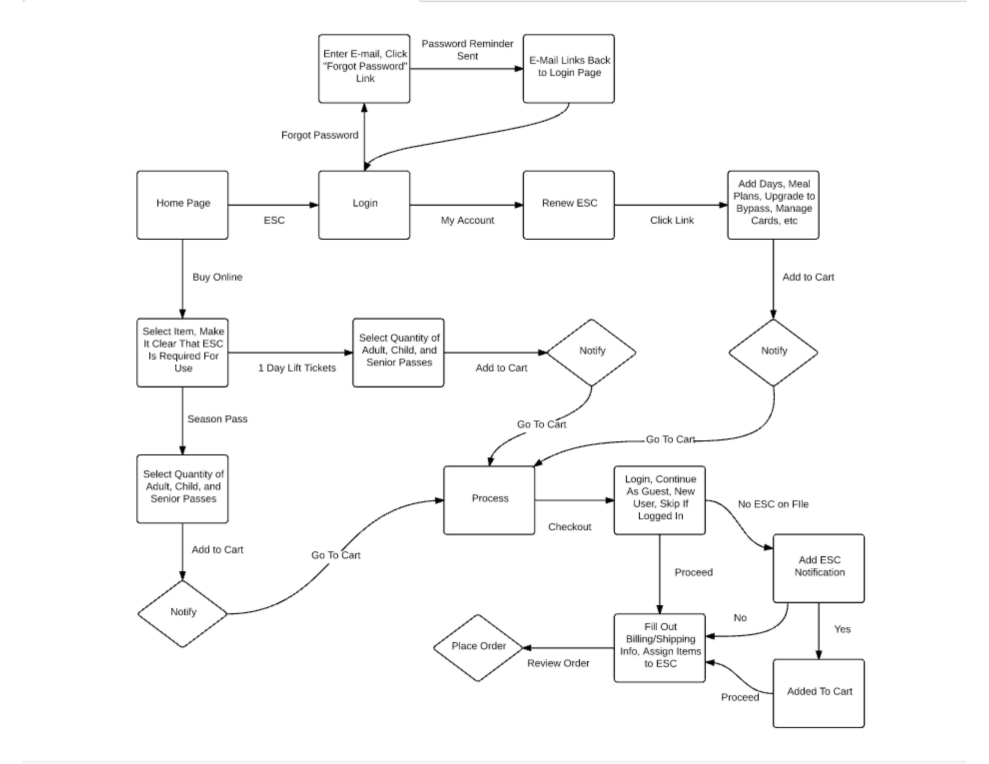 1. Login, add 1 Adult ESC w/ByPass, 1 Child ticket, and 1 Adult ticket to the shopping cart. Proceed with checkout.