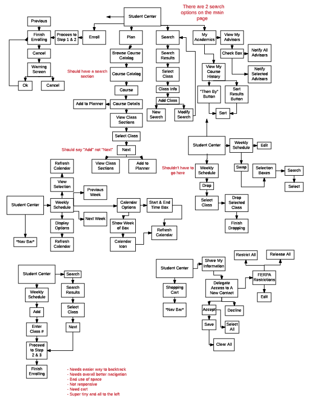 This showcases the process flow of MyKU as it currently is, including all errors. Also included is the competitor analysis. Which includes companys websites that I think have a good user exprience.