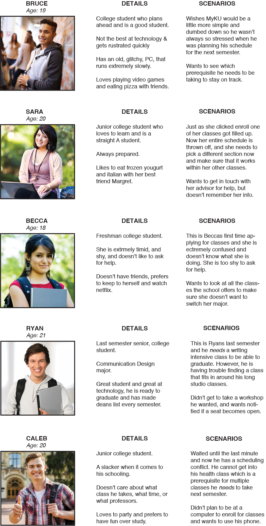 The personas used here are fictional people, used to help with what I would begin to fix within MyKU.