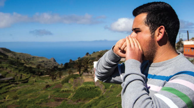 So for some silbo is a source of income, others understand it as a defining feature of their identity and for academics like Marcial Morera, a linguist at the University of La Laguna, it has another use. "Silbo is interesting from the point of view of the theory of language because, since it is a very simple system, it can help us understand how languages in general are formed," he says. There are fears that public spending cuts in Spain will affect the teaching of silbo at schools, one of the few places nowadays where children learn to whistle. And the recognition and prestige that the whistle has gained in recent decades has had unforeseen consequences.Many whistlers now compete for the attention of tourists, and some have even fallen out with each other and are no longer on speaking terms. But it is also true that there are many whistlers in the island willing to share their stories with anyone who wants to listen. I found one of them in the town of Chipude, one of the highest areas of the island. At 39 years old, Isidro is one of the few young people who learned silbo gomero directly from his parent. Cyro, as his friends call him, can be seen whistling in the mountain, calling his goats. "They recognise my whistle, as they recognise my voice," he says proudly. He is the only one from his family who remained in La Gomera, the rest having left to seek work in Tenerife. "After being there for eight years, I decided to come back. I never got used to life there. I like being in nature, I like my animals and my whistle. And here I'll stay, because the island needs me."