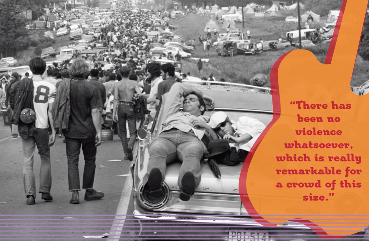 The lack of sanitation, food, and water was certainly an issue, but Woodstock was a famously peaceful affair. Though political assassinations and the Vietnam War were in the news, the young counterculture generation present at Woodstock was eager to bond, surround itself with music, and unite in peace.