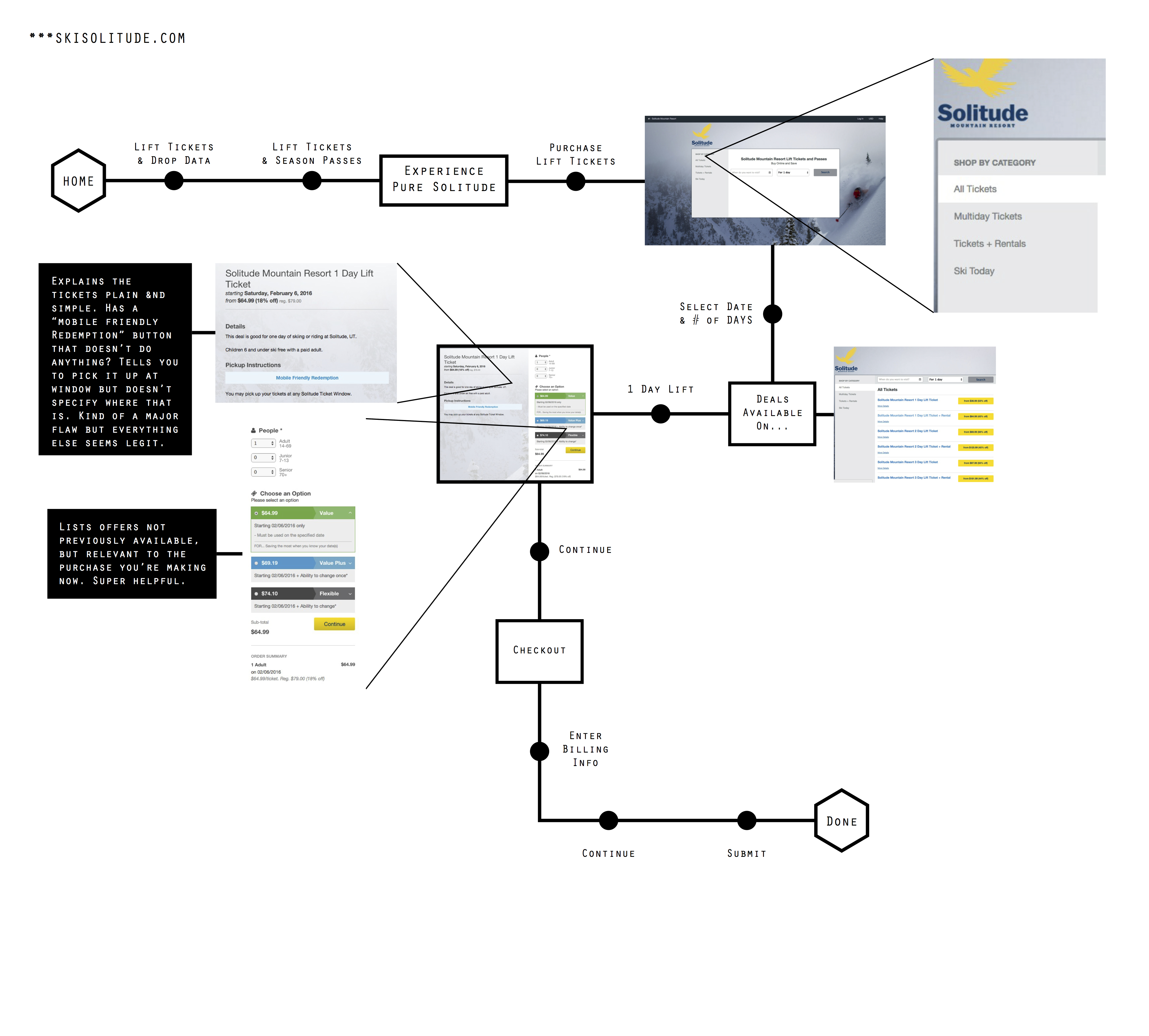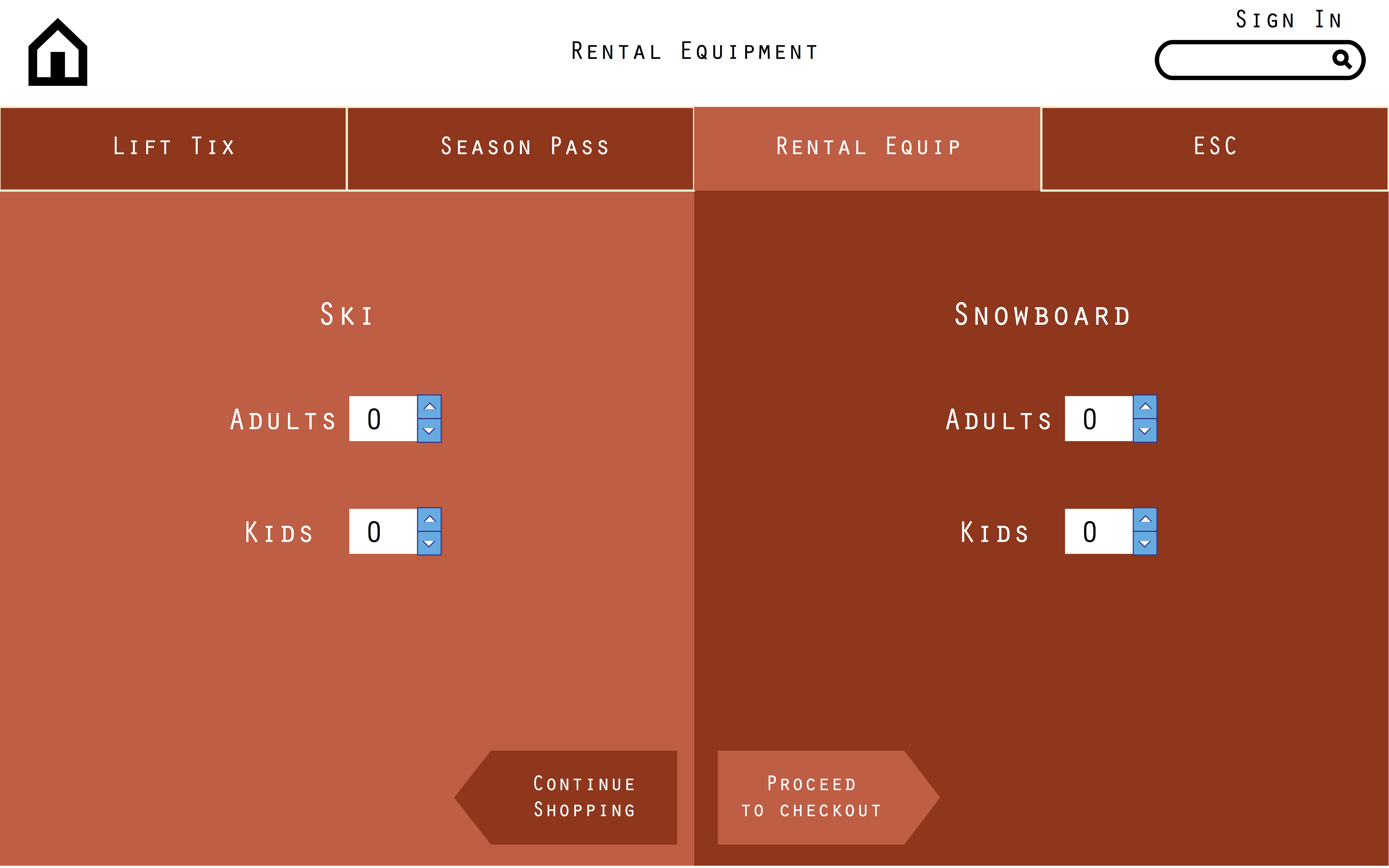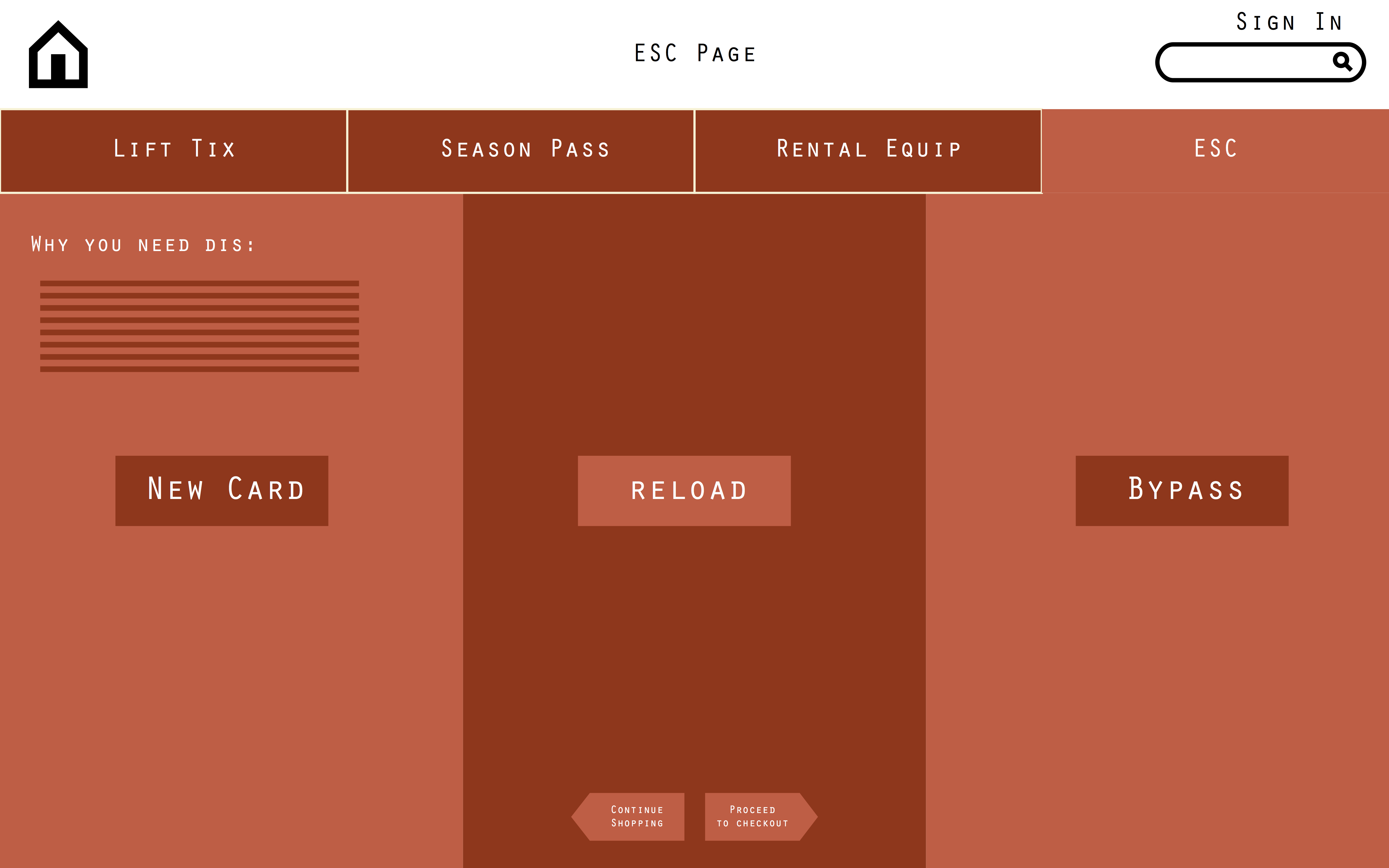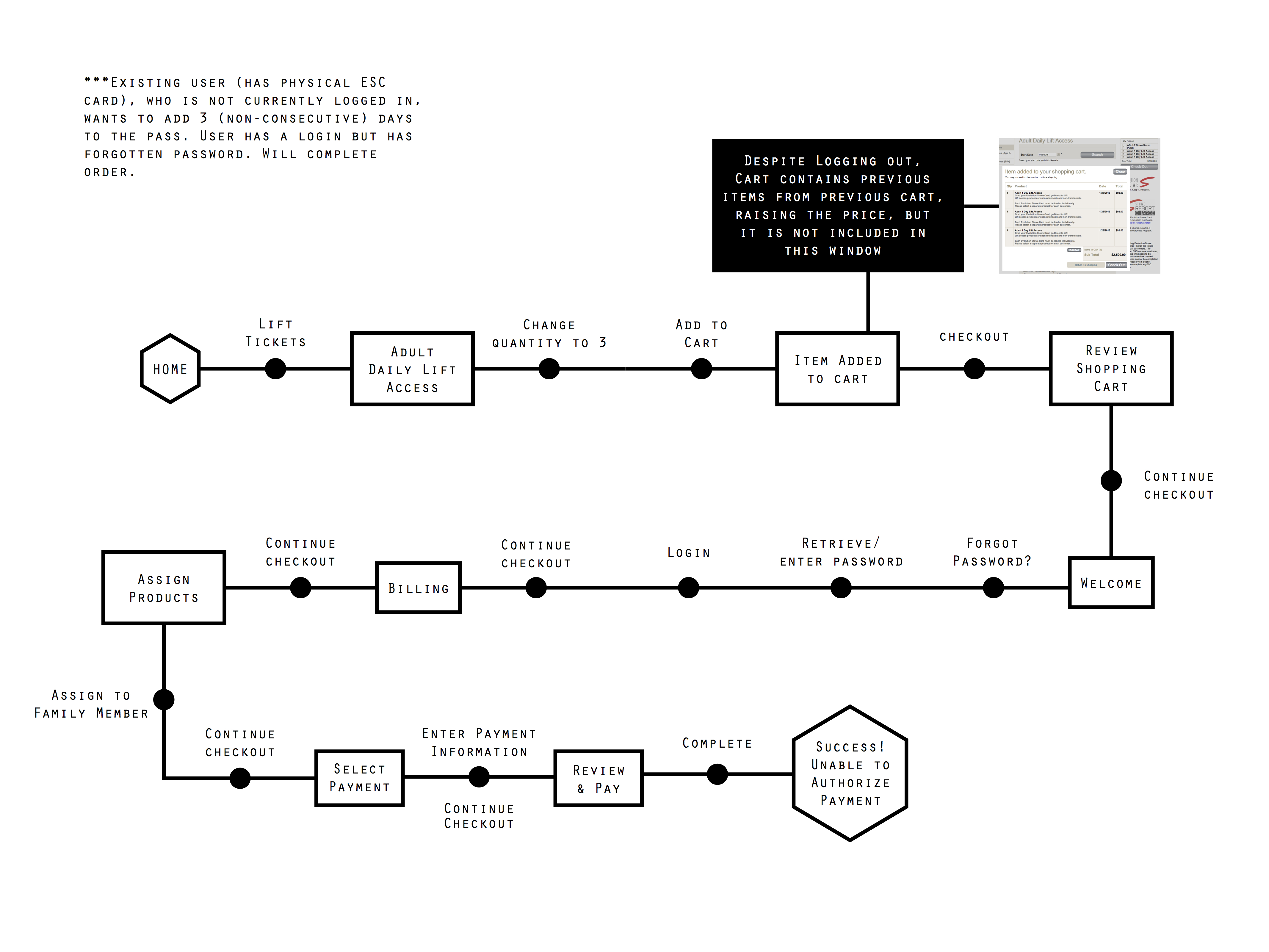 Scenario 2User did not know how to proceed from purchasing season passes to finding rental equipment. The continue shopping option may not have been prominent enough.