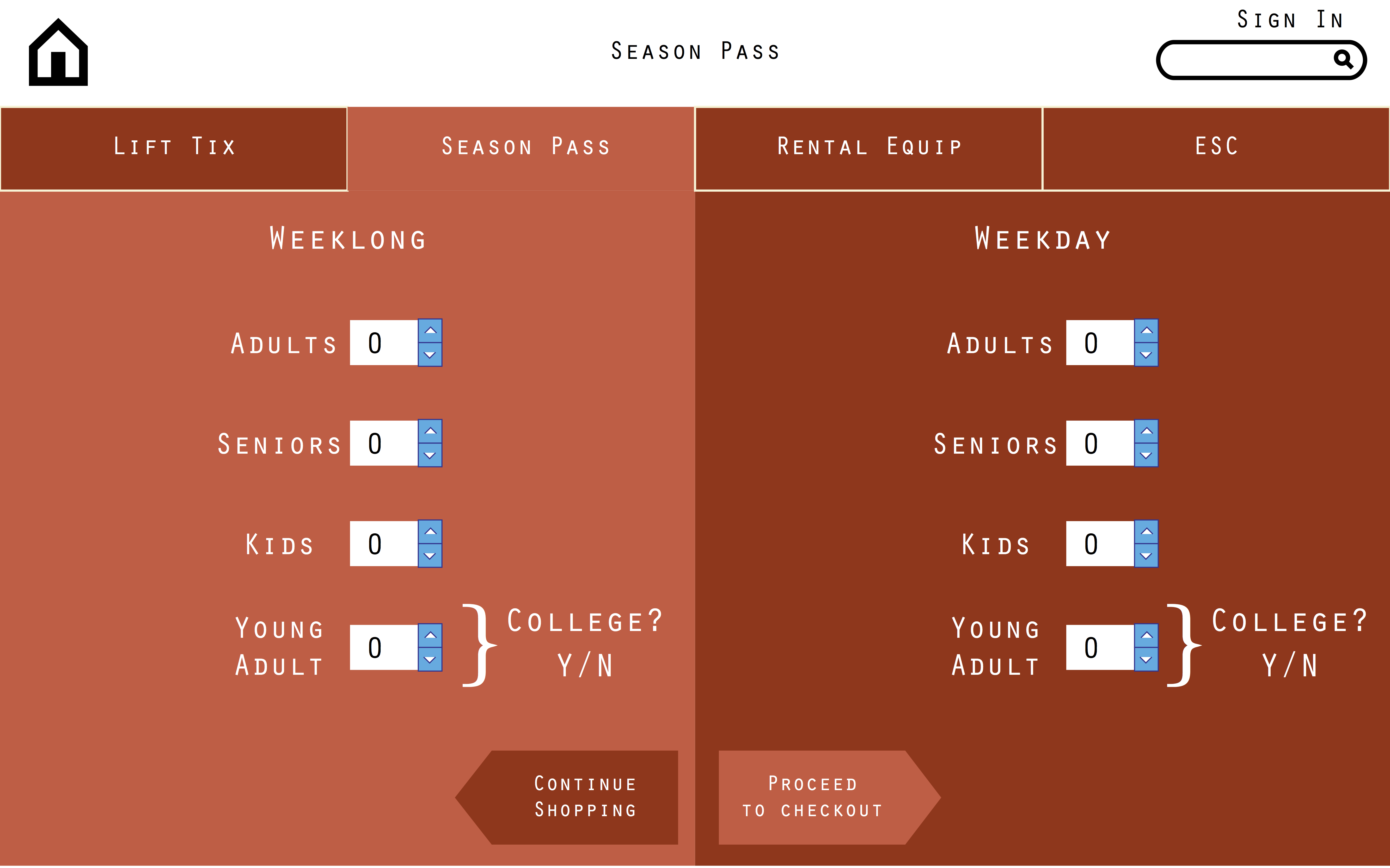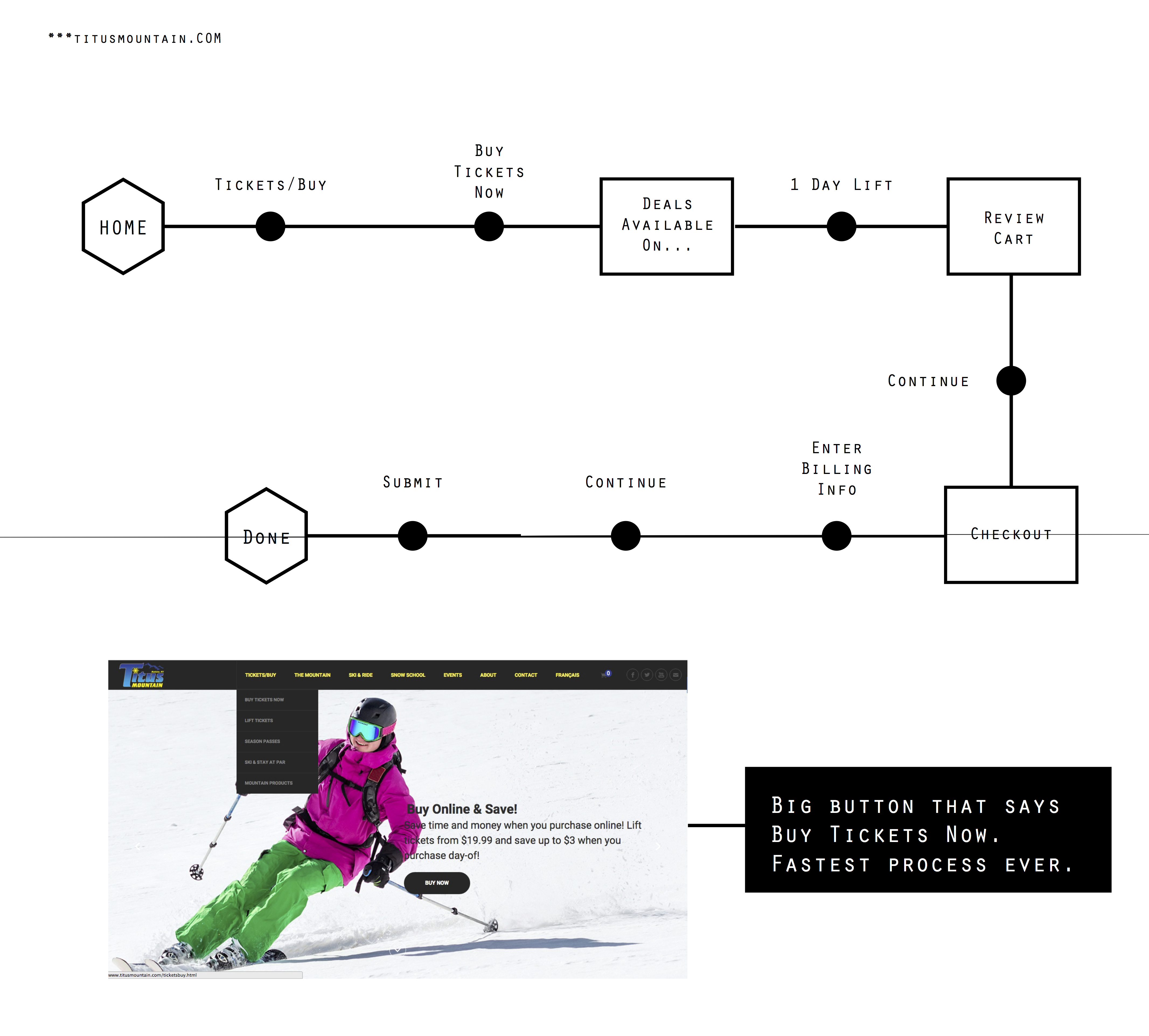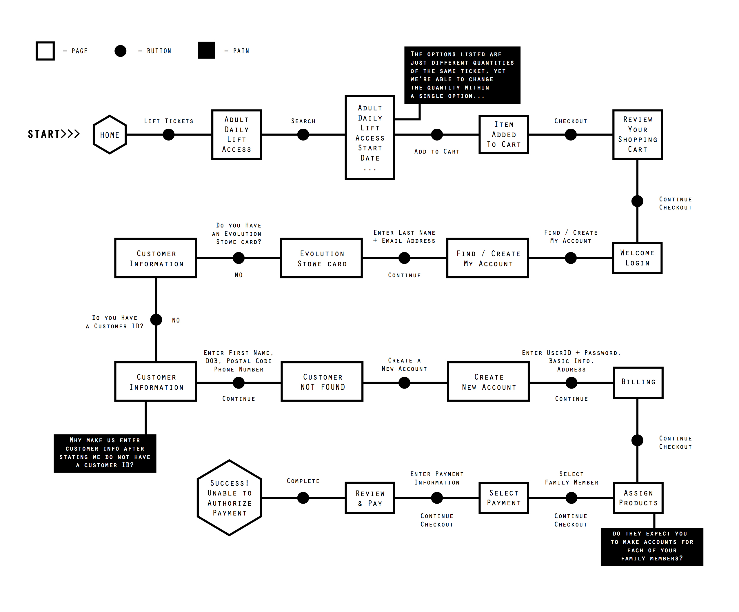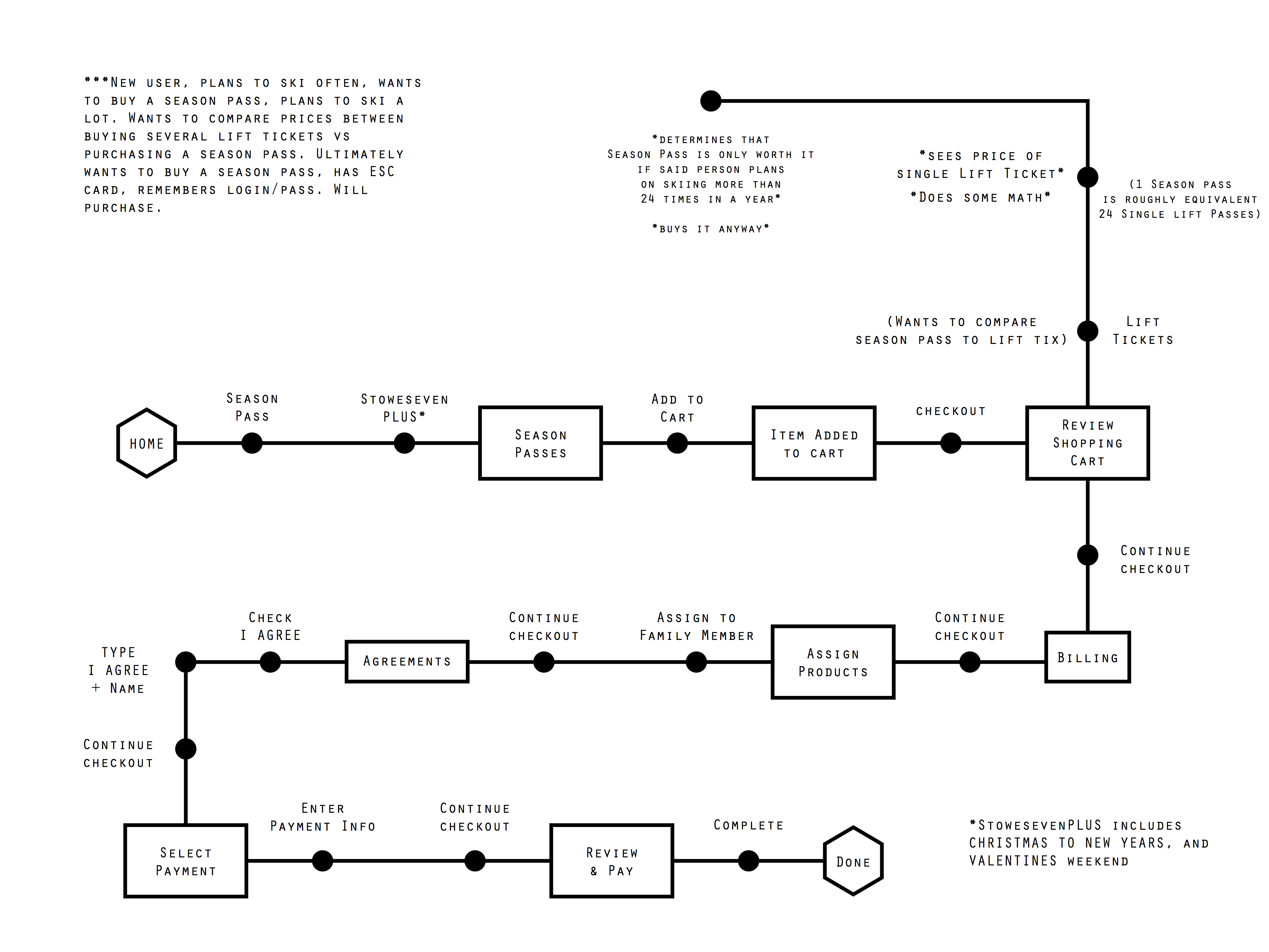 Scenario 2User did not know how to proceed from purchasing season passes to finding rental equipment. The continue shopping option may not have been prominent enough.