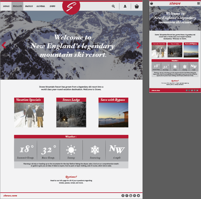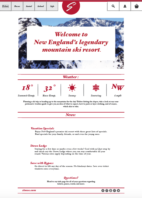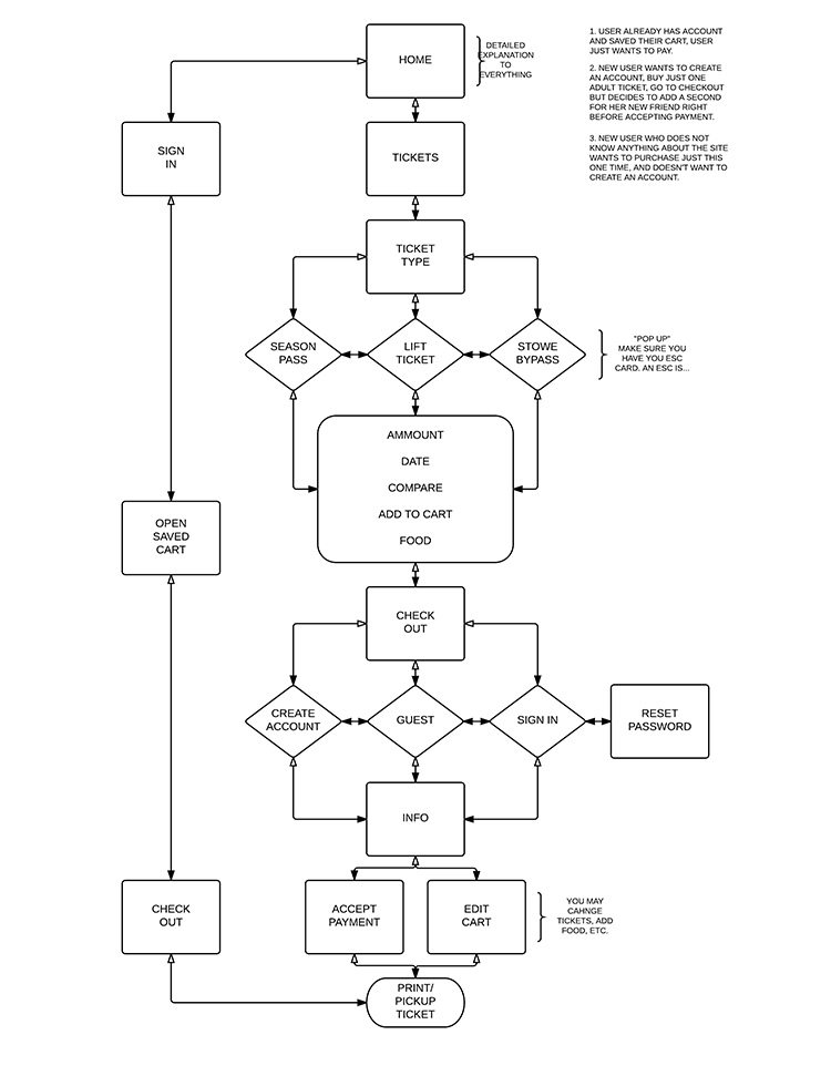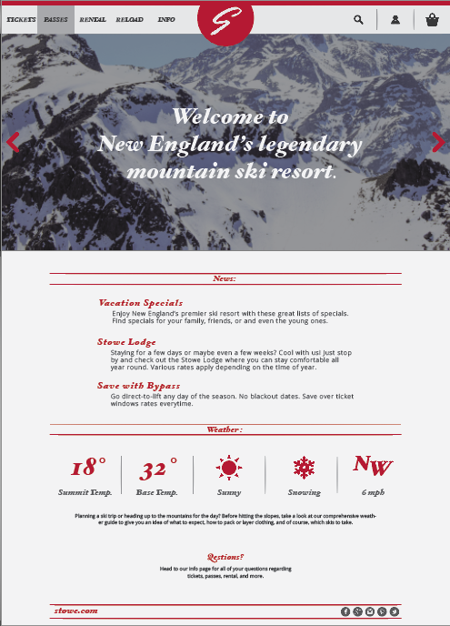 In the end, I have learned a great amount of information through this. My site has many faults and confusions as expected. Necessary changes that I would make first would be to add some sort of notification system to the cart and to explain a little more in detail what things mean such as ESC or blackout dates. There are some other cometic issues as well with mobile and how it looks, however that wouldn't be a priority to functionality, just ways to make things look better. I also think I could use better organization in parts of the lift tickets page and the passes page. Overseeing how people navigated them, it was obvious they were confused at first but then shortly after understood and navagated without issue. I would still like to take out that confusion or hesitation. Over all I am pleased with the whole process. It was really neat to see how much goes into a website even if from this minute scale. My site needs a great bit of work, but I think it functions well from watching people test it out. I am happy with it. Stowe is one crazy site(s).