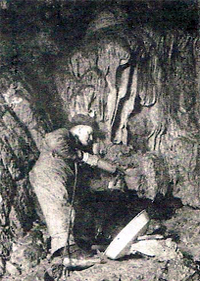 For the next two months, numerous curiosity seekers entered the open cave at their discretion. Fearful of vandalism and broken formations a neighboring farmer with a passionate hobby for collecting Indian relics and geologic specimens, leased the cave from Gideon Merkel in February 1872. Samuel D. F. Kohler, leesee, immediately erected a rudimentary wooden door to protect the cave from trespassers who could potentially damage the cave. A few years later a more appealing stout door replaced the wooden planks that were initially nailed to the side of the hillside.